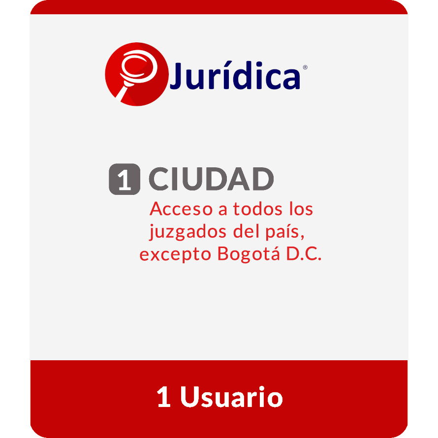 Acceda a todos los juzgados de la ciudad que escoja. El acceso a los despachos judiciales de Bogotá D.C., se debe comprar por separado. Incluye 1 usuario. Precio por mes de servicio. No incluye acceso a juzgados penales.